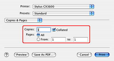 The Copies & Pages settings available are a standard feature of Mac OS X. See your operating system's documentation for details.