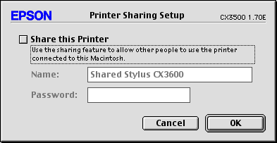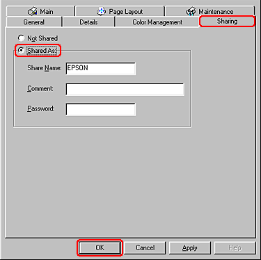 Select the Share this Printer check box, then type the printer name and password information as necessary.