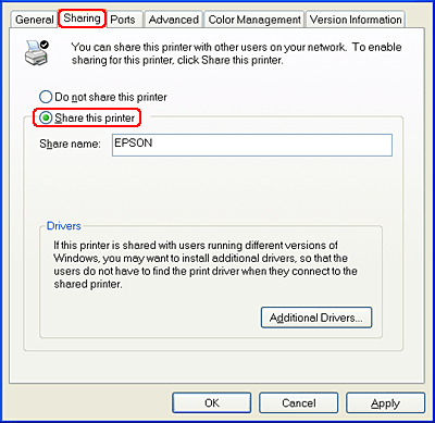 To share this product with other computers on a network, follow the steps below to configure the computer connected directly to this product.