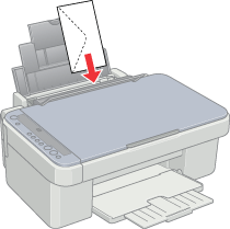 ![]() | Load the envelopes with the short edge first and the flap side to the left against the right edge guide, and slide them into the sheet feeder. |