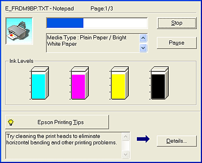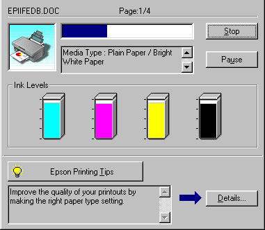 It is possible to cancel printing using either the Progress Meter or EPSON Spool Manager. Refer to the appropriate section below.
