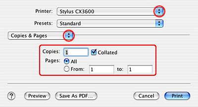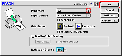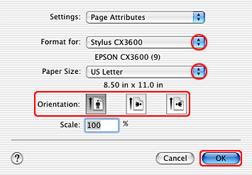 ![]() | Select Stylus CX3600 as the Printer setting. |