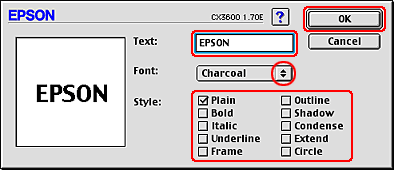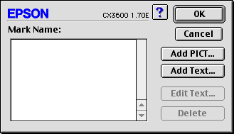 ![]() | To use an image file as a watermark, click Add PICT. Specify the desired image file, then click Open. |