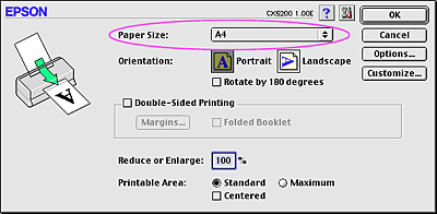 Select A4 as the Paper Size setting. Then, click OK to close the dialog box.