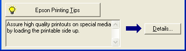 Tips for getting the most out of your EPSON printer software appear in the text box at the bottom of the progress meter window. A new tip appears every 30 seconds. For more details on the tip displayed in the window, click the Details button.