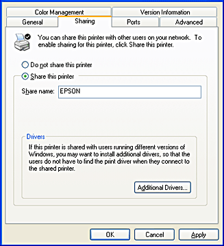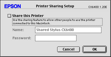 Select the Share this Printer check box, then type the printer name and password information as necessary.