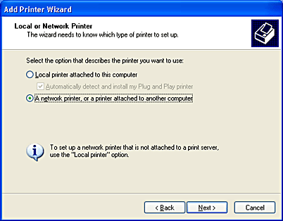 Depending on the operating system and the configuration of the computer to which this product is connected, the Add Printer Wizard may prompt you to install the printer driver from the printer software CD-ROM. In this case, click the Have Disk button and follow the on-screen instructions.