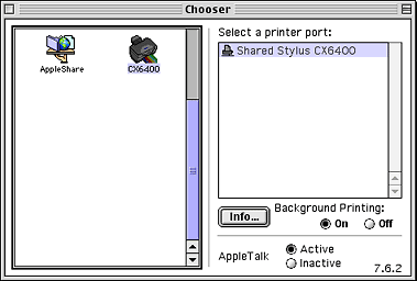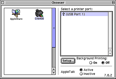 Choose Chooser from the Apple menu. Click an icon for this product and select the printer port that you want to use from the Select a printer port list.