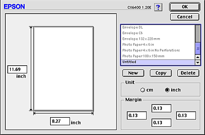 If the appropriate paper size is not included in the Paper Size list in the Page Setup dialog box, follow the steps below to define a new custom paper size.