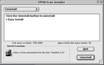 ![]() | Select Uninstall from the pull-down menu at the top left, and then click Uninstall. |