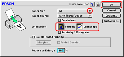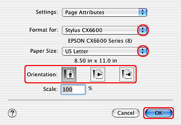 Make the appropriate Paper Size and Orientation settings.