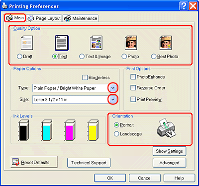 Click the Main tab, then make the Quality Option setting. For details, see online help.