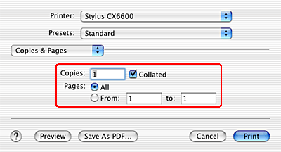 The Copies & Pages settings available are a standard feature of Mac OS X. See your operating system's documentation for details.