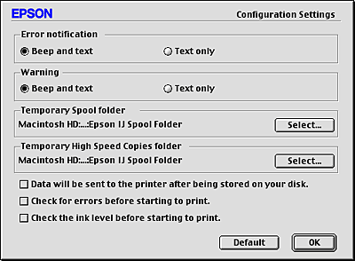 To change the way that the EPSON StatusMonitor utility monitors this product, or to change the way that this product handles print jobs, follow the steps below.