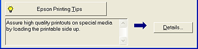 Tips for getting the most out of your Epson printer software appear in the text box at the bottom of the progress meter window. A new tip appears every 30 seconds. For more details on the tip displayed in the window, click the Details button.