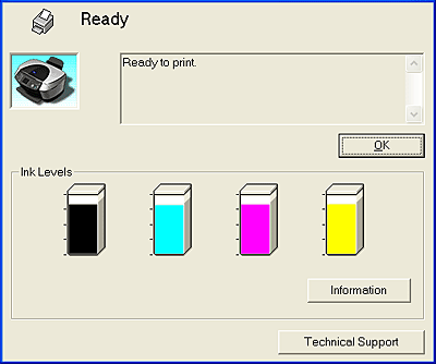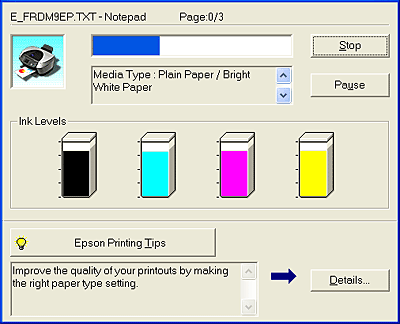 The progress meter dialog box appears automatically when you send a print job to this product. You can check the remaining amount of ink from this dialog box.