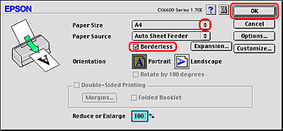 After you have loaded the media, change your printer driver settings for Borderless printing.