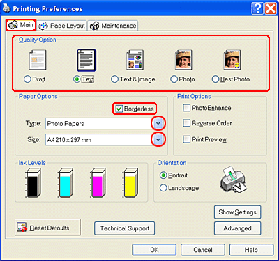 Click the Main tab, then make the Quality Option setting. For details, see online help.