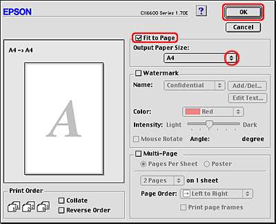 You can use the Fit to Page printing function when you want to print, for example, an A4 size document on another size paper.