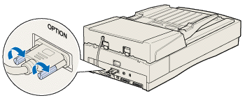 ![]() | Attach the Automatic Document Feeder's connector to the scanner's option interface. |