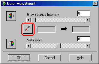 ![]() | In the Color Adjustment dialog box, click the eyedropper button under Gray Balance Intensity. |