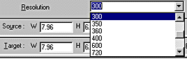 You can change the resolution for the current scanning operation in the main dialog box by selecting a resolution from the list or by typing in a value up to 6400 dpi. The maximum resolution you can select is 12800 dpi. Changes made here override the resolution setting in the Destination dialog box.