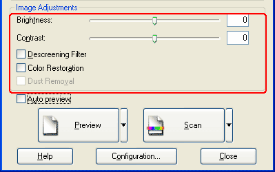 If the Auto preview check box is selected, preview scanning automatically starts when you access the Home Mode. If this check box is cleared, previewed image does not appear automatically.