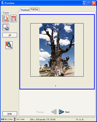 The Normal Preview method allows you to see the entire previewed image and the effects of settings you made, and to make additional image adjustments. You can also use marquees to scan selected portions of an image. For details on marquees, see Using Marquees.