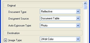 Specify the Document Type and Image Type settings to match your images.