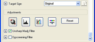 Specify the output size of the scanned image as the Target Size and make adjustments using the image quality adjustment tools, if necessary.