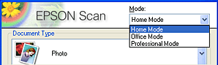 You can choose and change the scanning mode from the list box at the top right of the window.