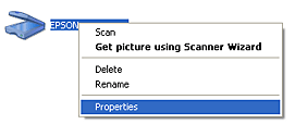 For Windows Me users: Right-click your scanner's icon and select Properties.