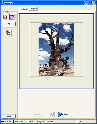 The Normal Preview method allows you to see the entire preview image and the effects of settings you made, and to make additional image adjustments. You can also use marquees to scan selected portions of an image. For details on marquees, see Using Marquees.