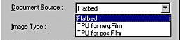 When using the document table on the scanner, leave the Document Source set to Flatbed. Other selections are available depending on what is installed. These are the optional Automatic Document Feeder, and TPU for Neg. Film or TPU for Pos. Film (for the Film Adapter, optional with the Perfection 1200S and the 1200U, and included with the Perfection 1200PHOTO).