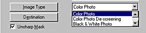 The Image Type list provides the following predefined settings. EPSON recommends you use the predefined settings first, then later improve the quality of the scanned image manually by making the detailed settings described in the next pages, if necessary. Click the arrows on the right to view all of the available settings.