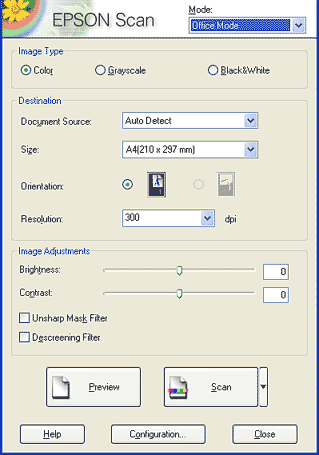Follow the steps below to scan documents for viewing on computer screen in the Office Mode.
