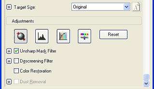 Specify the output size of the scanned image as the Target Size and make adjustments using the image quality adjustment tools, if necessary.