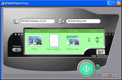 Use this application to scan and then print images as photos. You can print in various sizes, or place several photos on the same page. You can also create collages or print several versions of the same image easily. When you launch this application, the following screen appears.