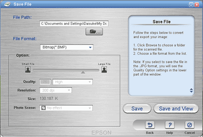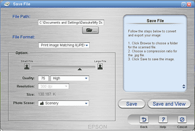 Use this application to scan and then send images to a desired application for further editing. When you launch this application, the following screen appears and the image is scanned from EPSON Scan.