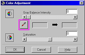 ![]() | In the Color Adjustment dialog box, click the eyedropper button under Gray Balance Intensity. |