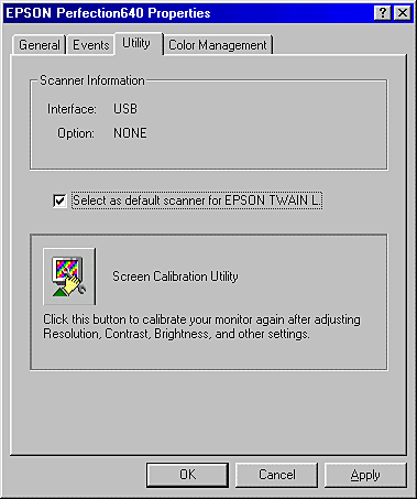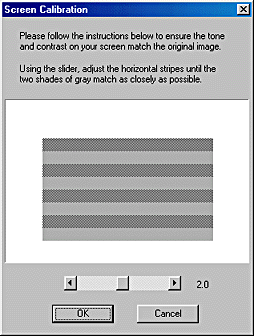 Click the EPSON Screen Calibration icon in the EPSON Scanner folder to view the Screen Calibration dialog box.