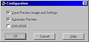 You can adjust the Preview window by changing the configuration. Click the Configuration button on the Manual mode window to display the following dialog box and make changes.
