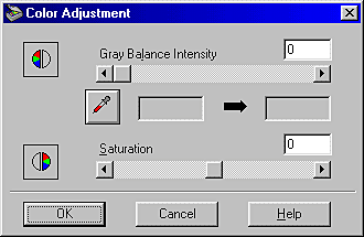 Click the Color Adjustment button on the Manual mode window to view the following dialog box.