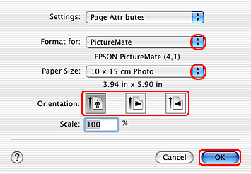 ![]() | Select PictureMate as the Format for setting. When printing with standard margins, select PictureMate (Borders). |
