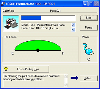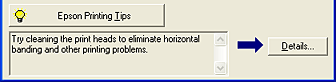 Tips for getting the most out of your Epson printer driver appear in the text box at the bottom of the progress meter window. A new tip appears every 30 seconds. For more details on the tip displayed in the window, click the Details button.