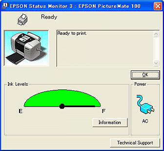 ![]() | Click the EPSON StatusMonitor button. The EPSON StatusMonitor dialog box appears. |