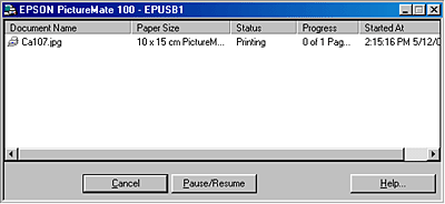 EPSON Spool Manager is similar to Windows Print Manager. If it receives two or more print jobs at one time, it holds them in the order that they were received (with printers on a network this may be called a print queue). When a print job reaches the top of the queue, the EPSON Spool Manager sends the job to the printer. You can cancel print jobs from the Spool Manager. You can also view print status information about the print jobs which have been sent to your printer, as well as pause and resume or restart selected print jobs.