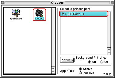 It is necessary to select the printer driver for the printer in the Chooser before printing. Follow the steps below to select the printer driver.