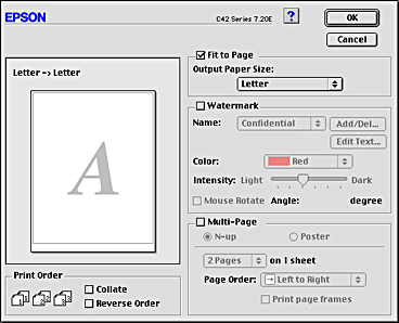 From the Output Paper Size list on the Layout menu (Windows) or in the Page Setup dialog box (Macintosh), select the paper size that you loaded in your printer.