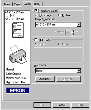 Select the Reduce/Enlarge check box and select the Fit to page on the Layout menu (Windows) or select the Fit to Page check box in the Layout dialog box (Macintosh).